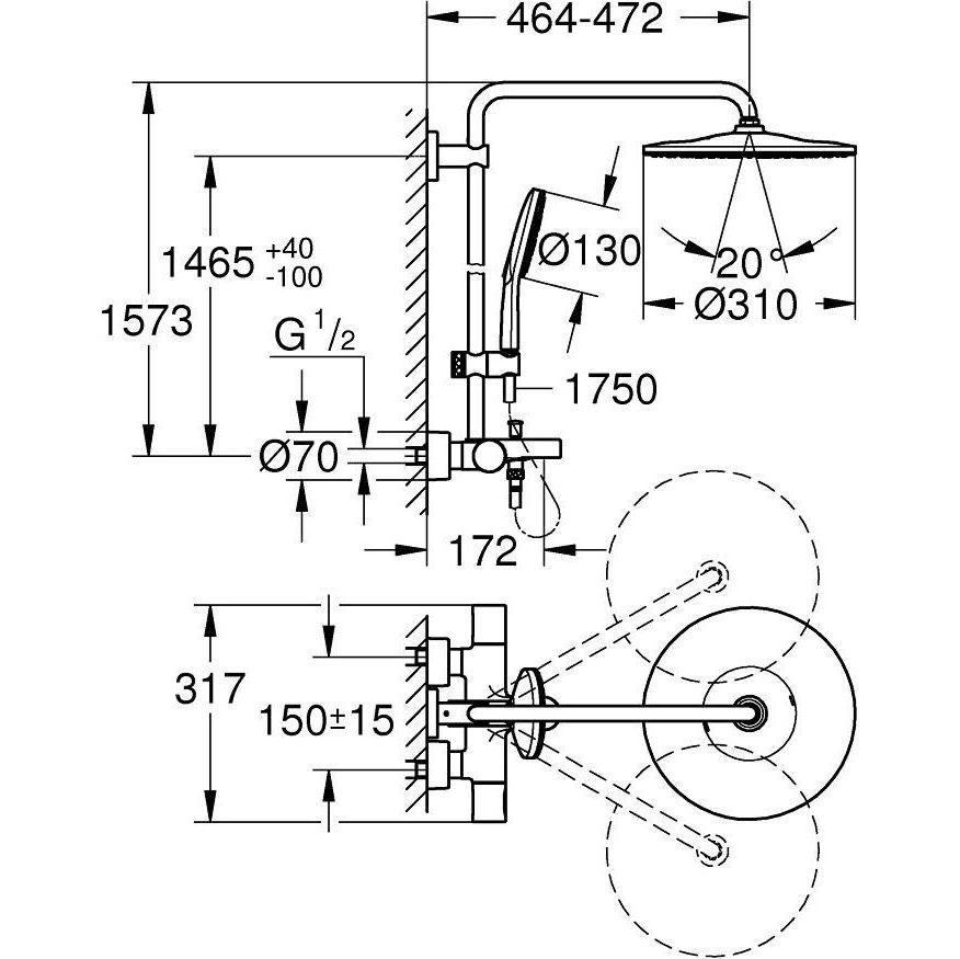 GROHE QuickFix (верхний кронштейн регулируется для адаптации к существующим отверстиям)
