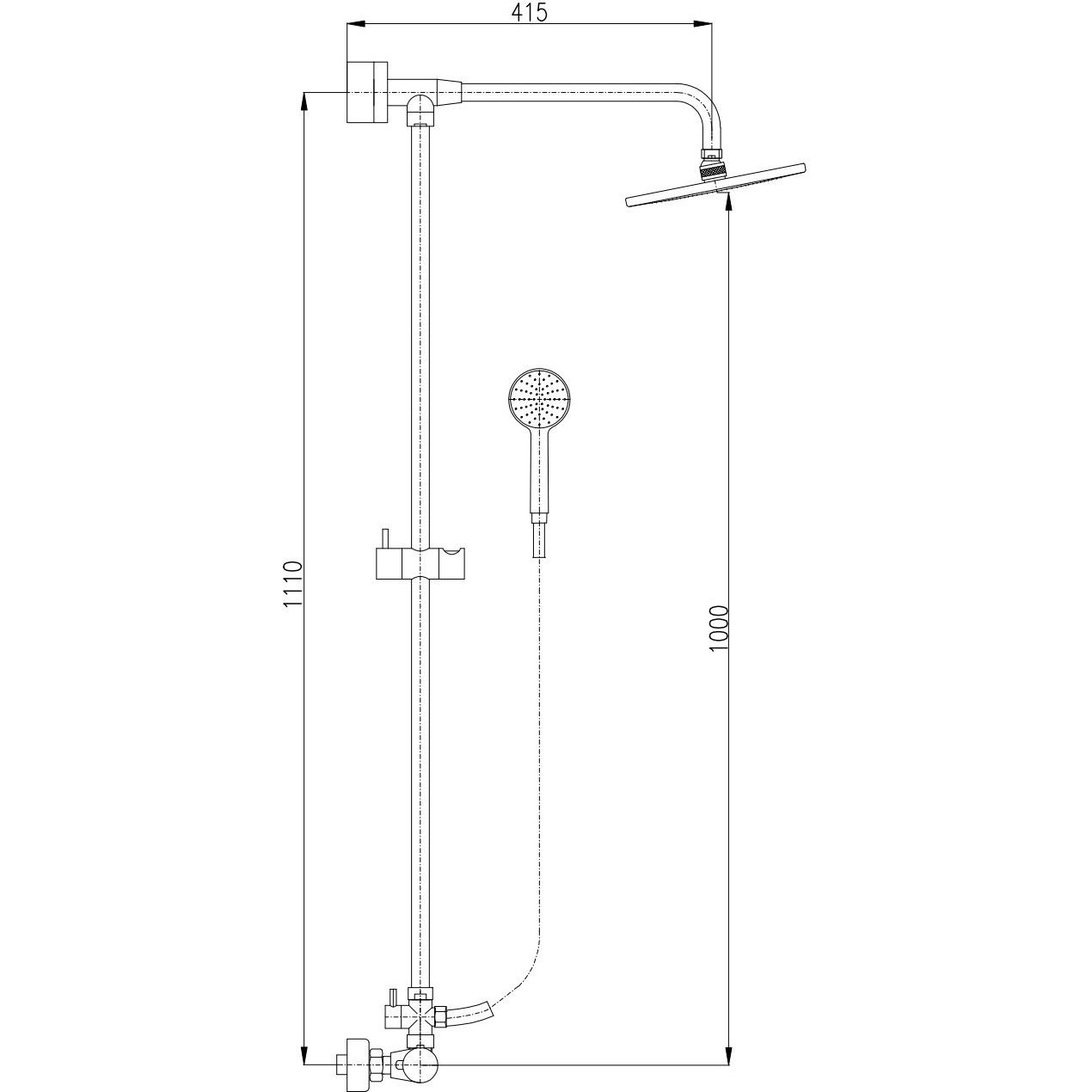 душевая штанга 1110 мм с переключателем MD0632+MD0629
