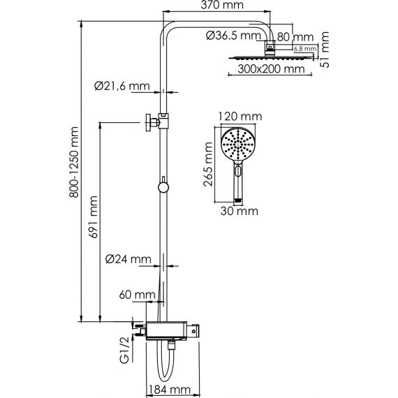 Душевая стойка с термостатом WasserKraft A113.069.127.CH Thermo