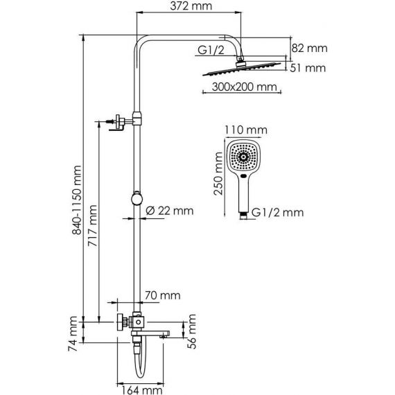 Стойка для душа, Ø 22 мм регулируемая по высоте