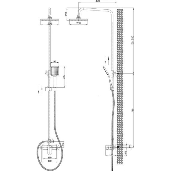 верхний душ,держатель для душа,душевая штанга,крепление,ручной душ,смеситель,шланг