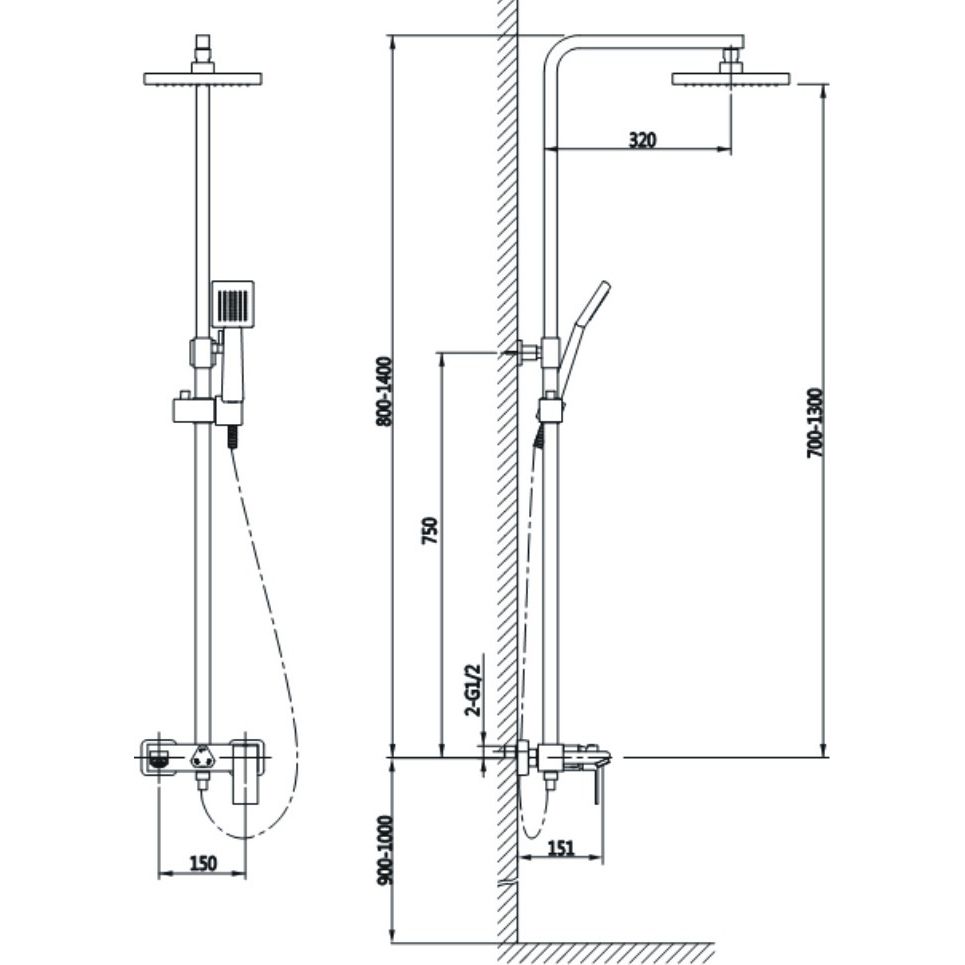 Штанга душевой системы регулируется по высоте
