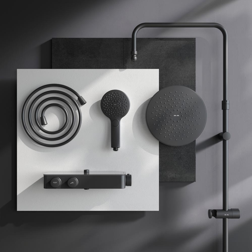 Душевая система AM.PM Inspire V2.0 F0750A422 с термостатом, чёрный