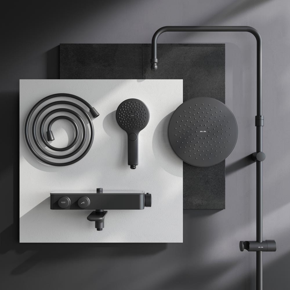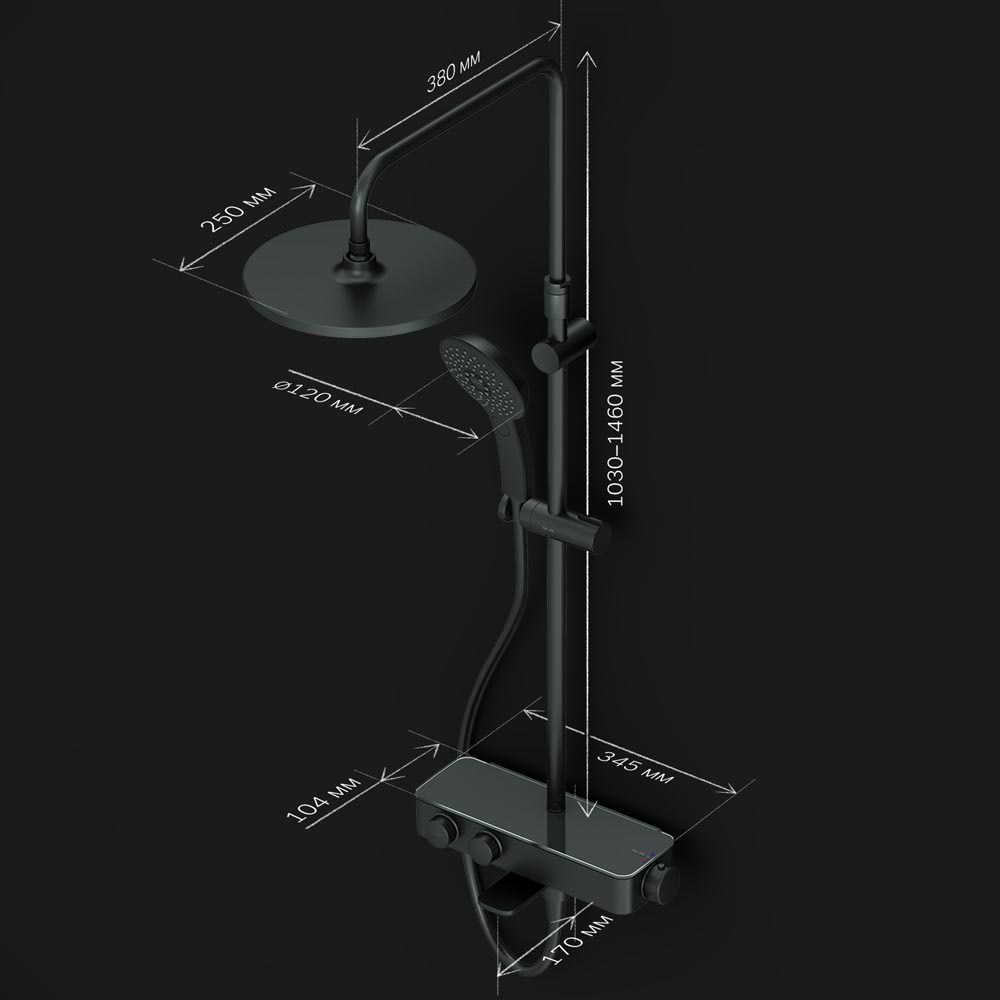 Душевая система AM.PM Inspire V2.0 F0750A522 с термостатом, чёрный