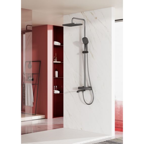 Душевая система с термостатом и выдвижным изливом Raglo R22.26.09, материал латунь, цвет графит.
