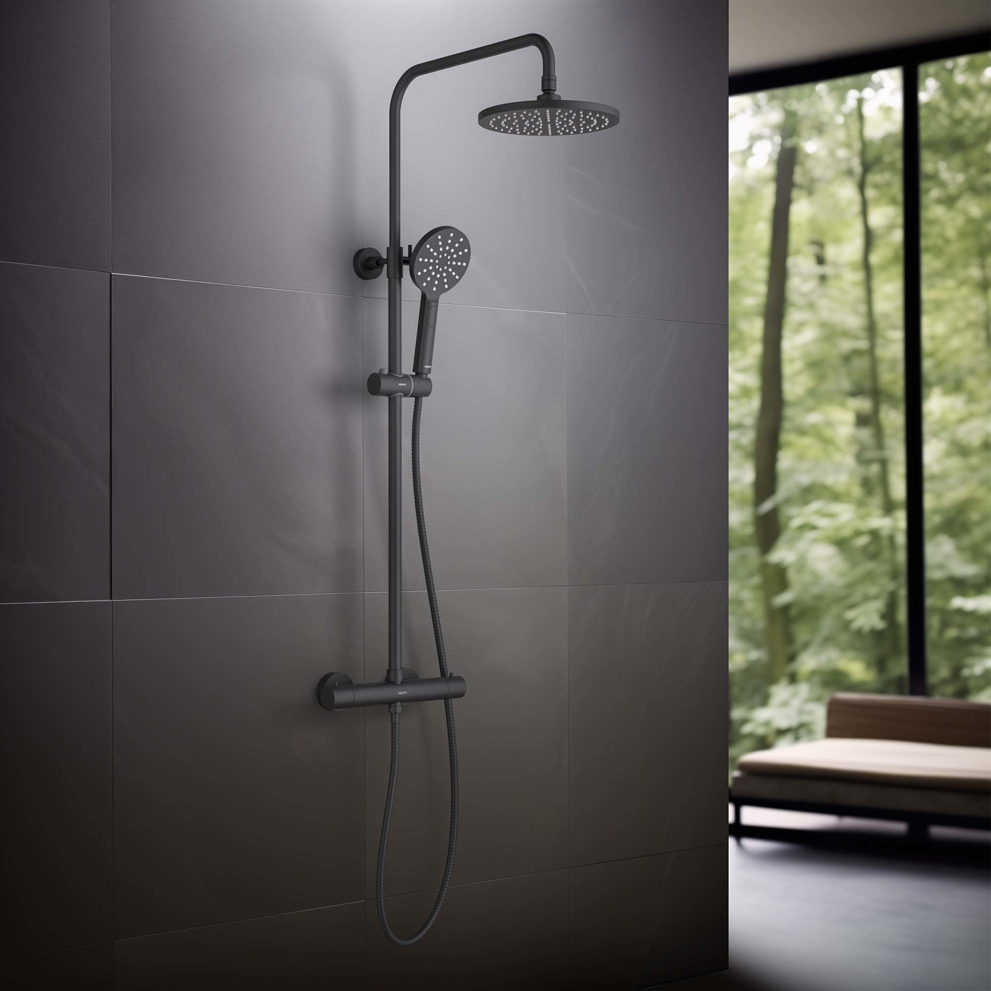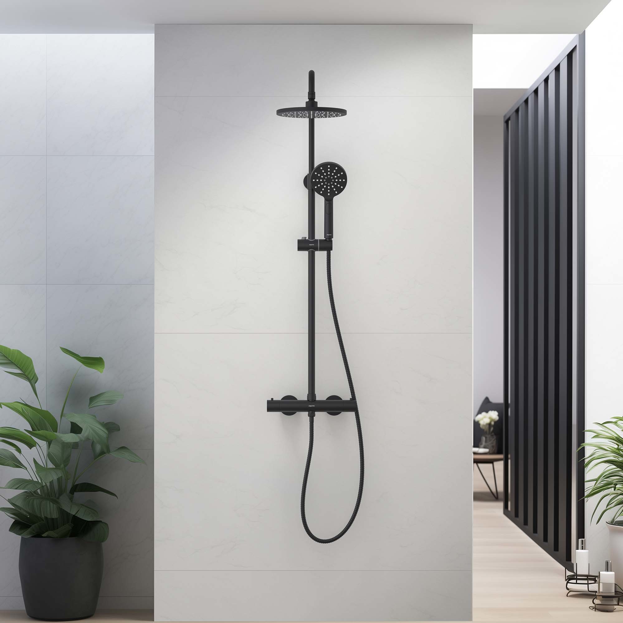 Душевая стойка с термостатом Aquatek Европа AQ2343MB, материал латунь, цвет чёрный матовый.
