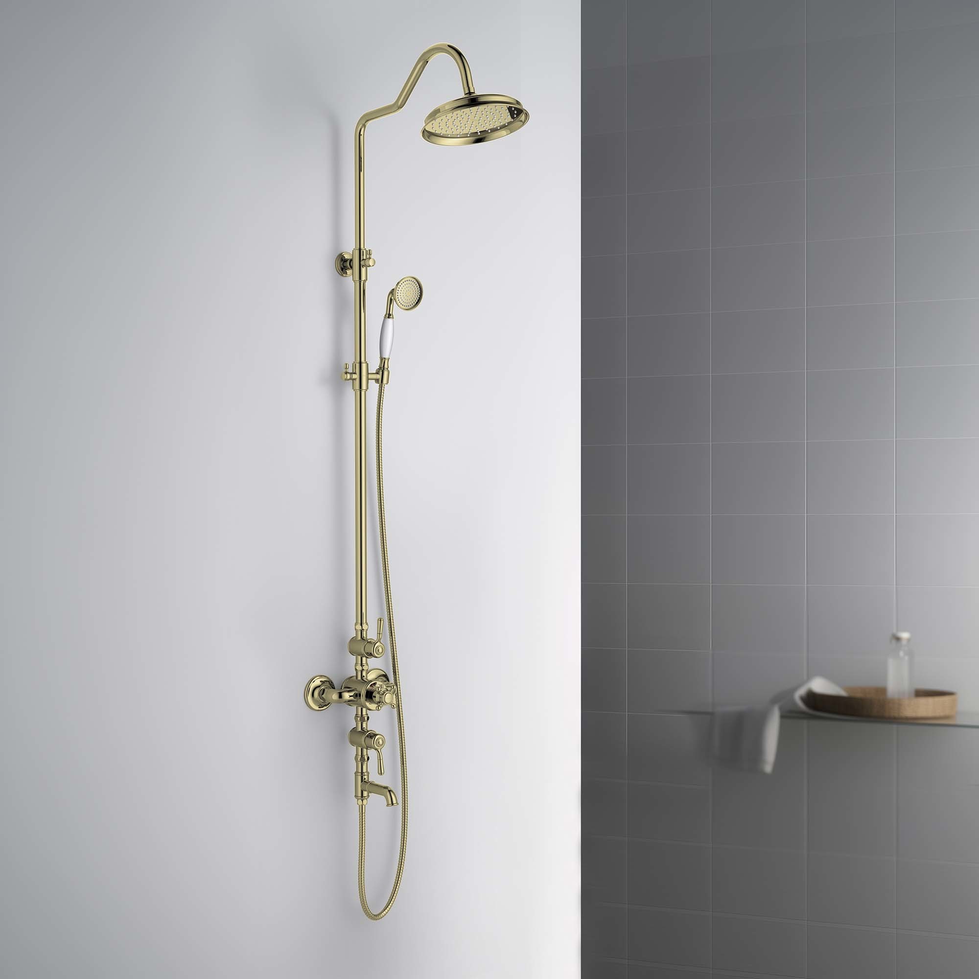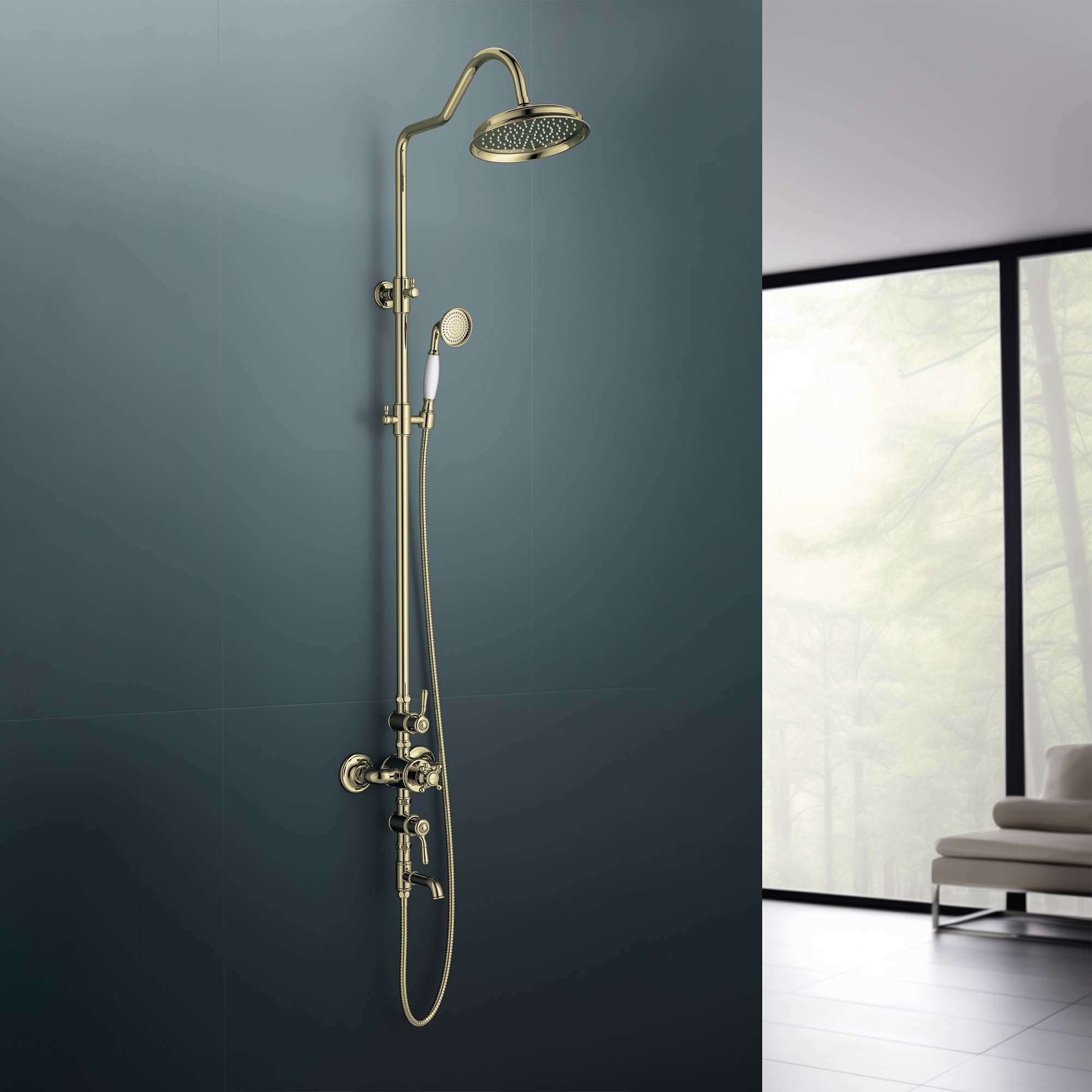 Душевая стойка с термостатом и выдвижным изливом Aquatek Классик AQ2543PG, материал латунь, цвет золото.