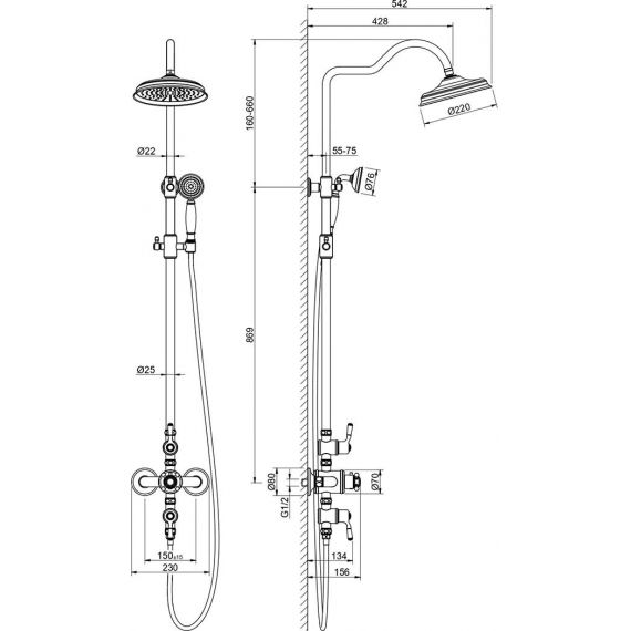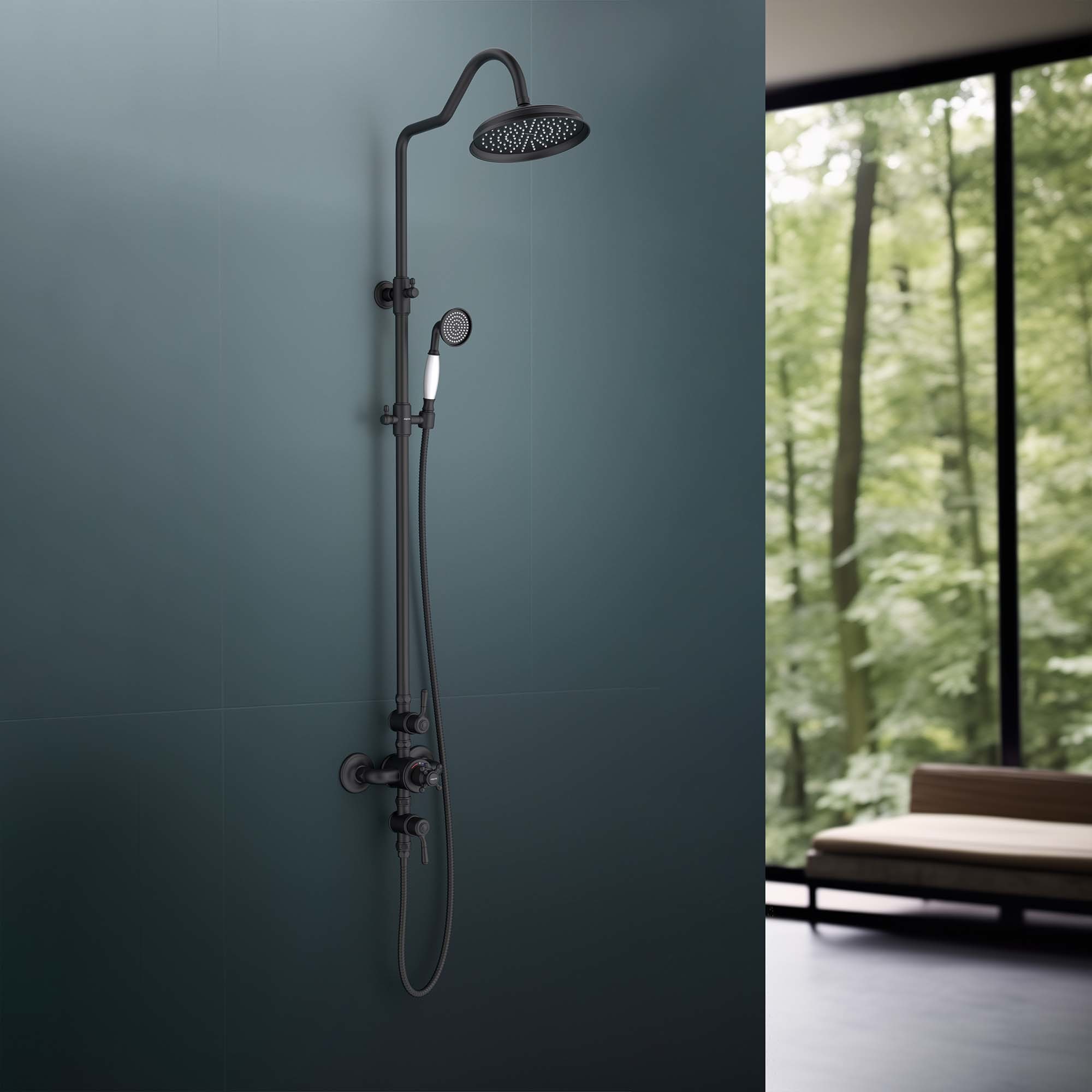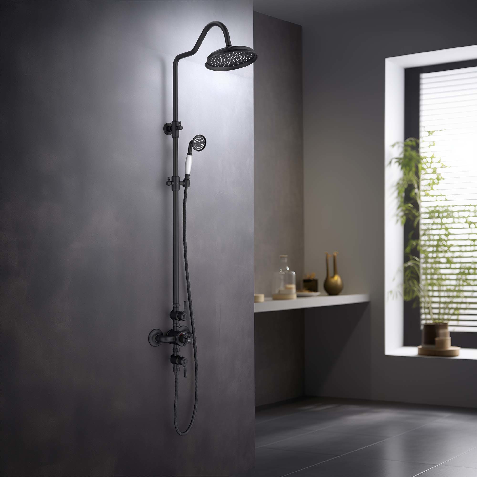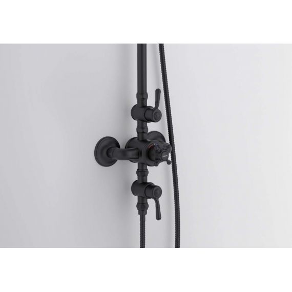 Душевая стойка с термостатом Aquatek Классик AQ2563MB, материал латунь, цвет чёрный матовый.