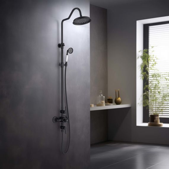 Душевая стойка с термостатом Aquatek Классик AQ2563MB, чёрный матовый