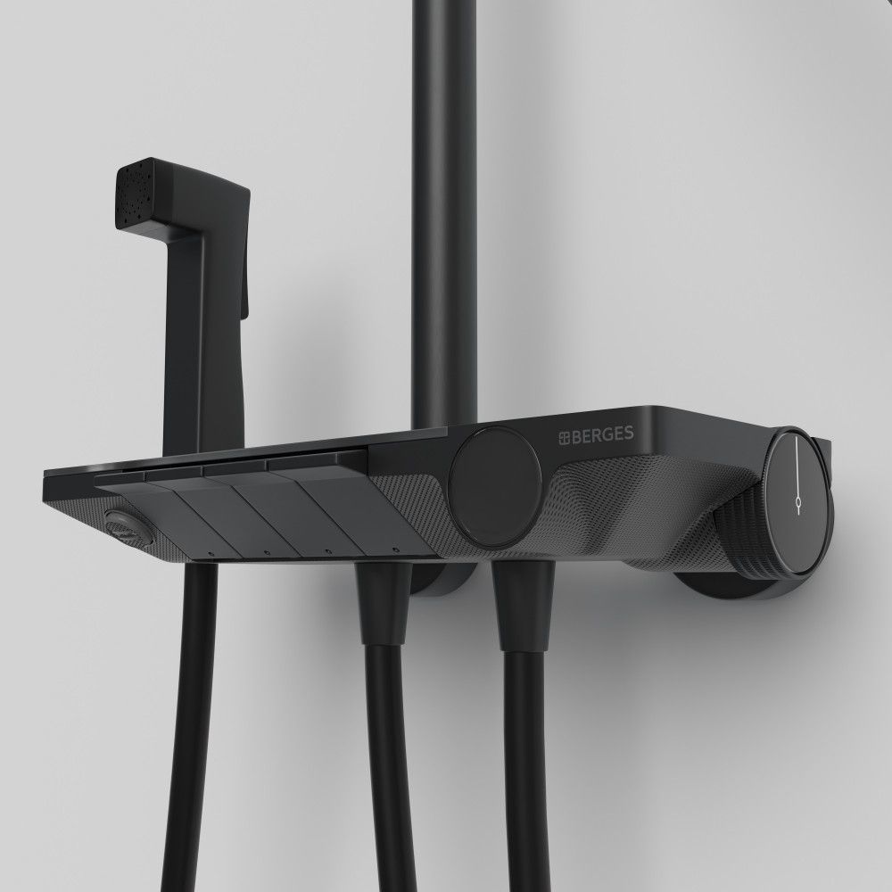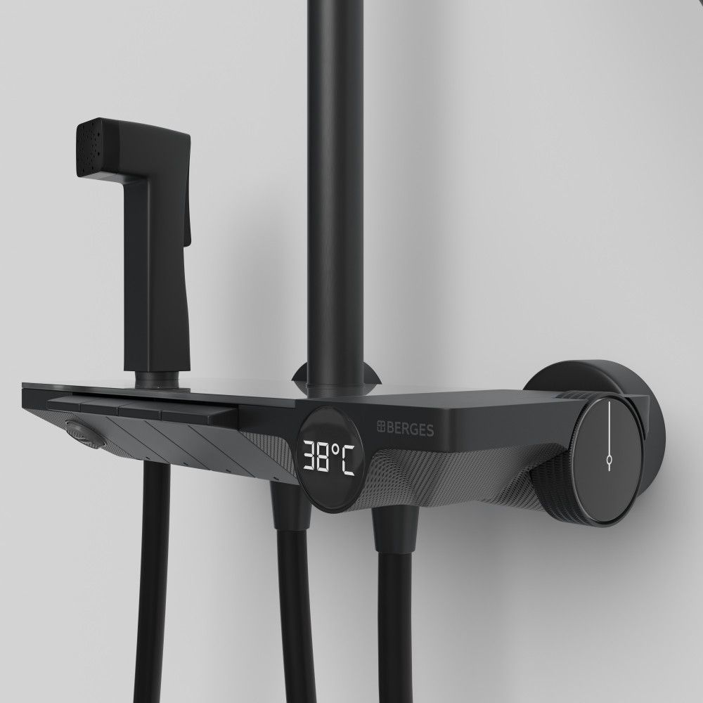 Душевая стойка с термостатом Berges Wasserhaus Pulsar 075012, чёрный матовый