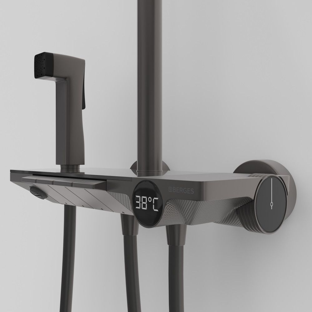 Душевая стойка с термостатом Berges Wasserhaus Pulsar 075013, оружейная сталь