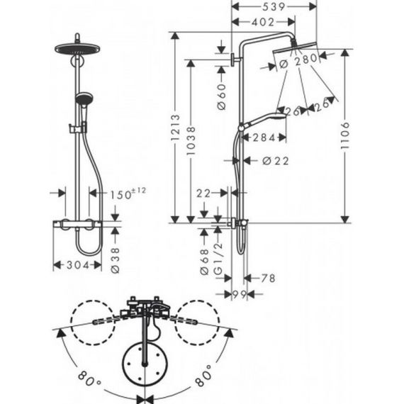 размер душевого диска: 280 мм