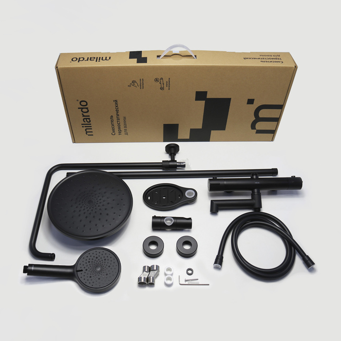 Душевая стойка с термостатом Milardo Ideal Spa ILSBLTHM06, чёрный матовый