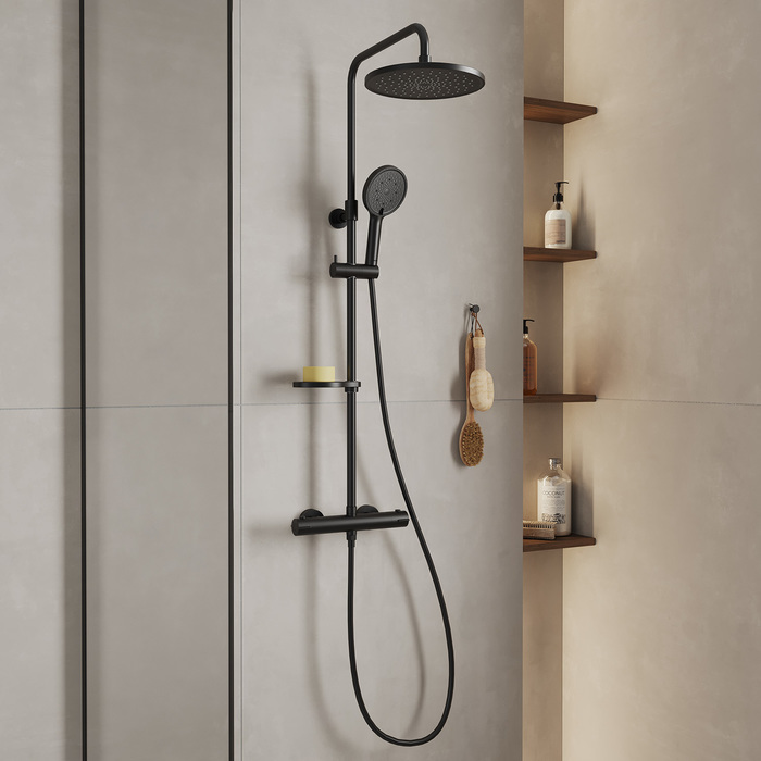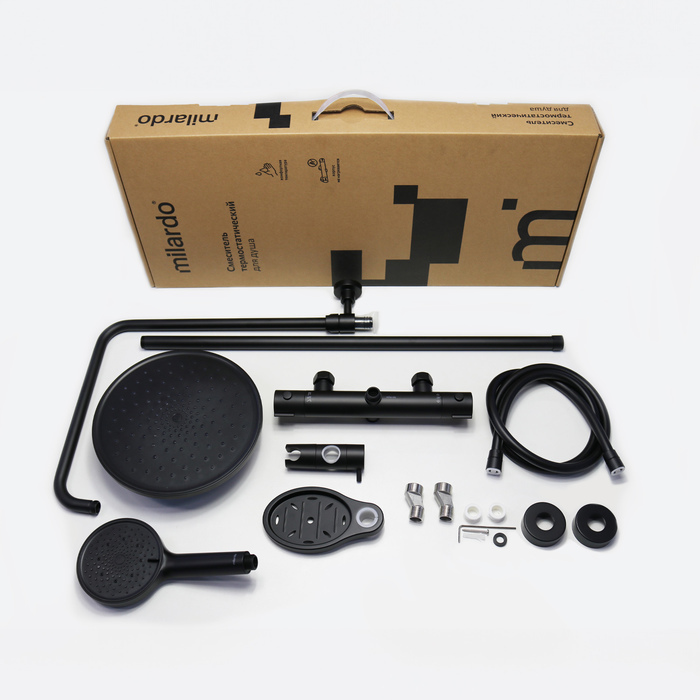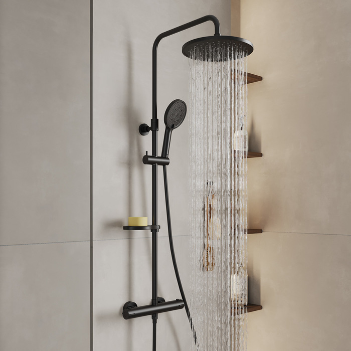 Душевая стойка с термостатом Milardo Ideal Spa ILSBLTHM89, чёрный матовый