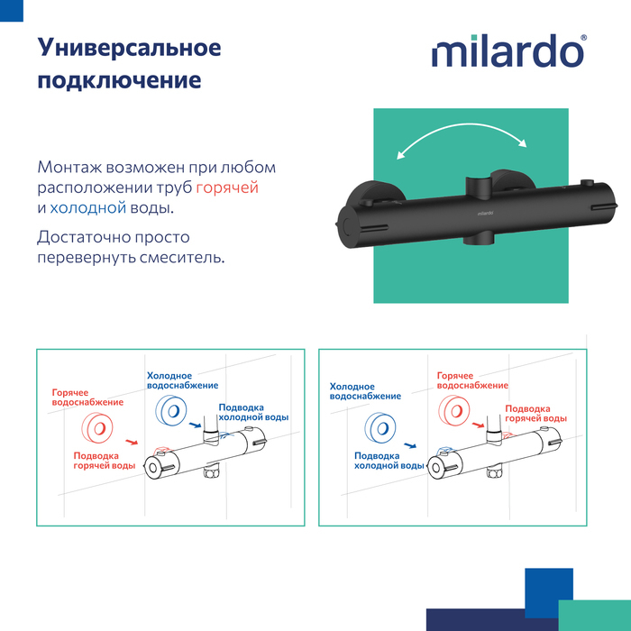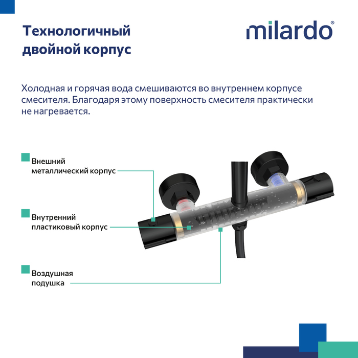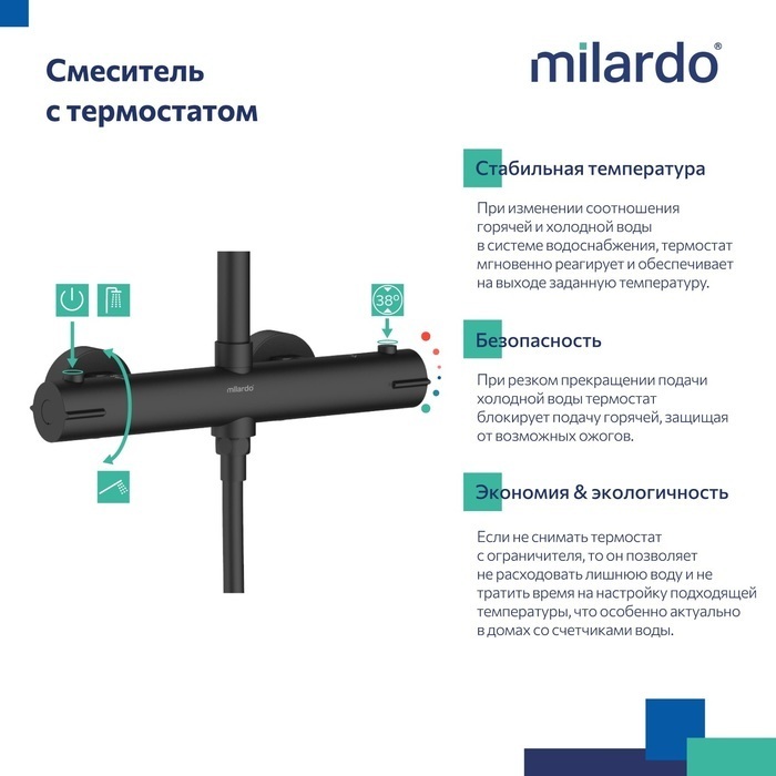 Душевая стойка с термостатом Milardo Ideal Spa ILSBLTHM89, материал латунь, цвет чёрный матовый.