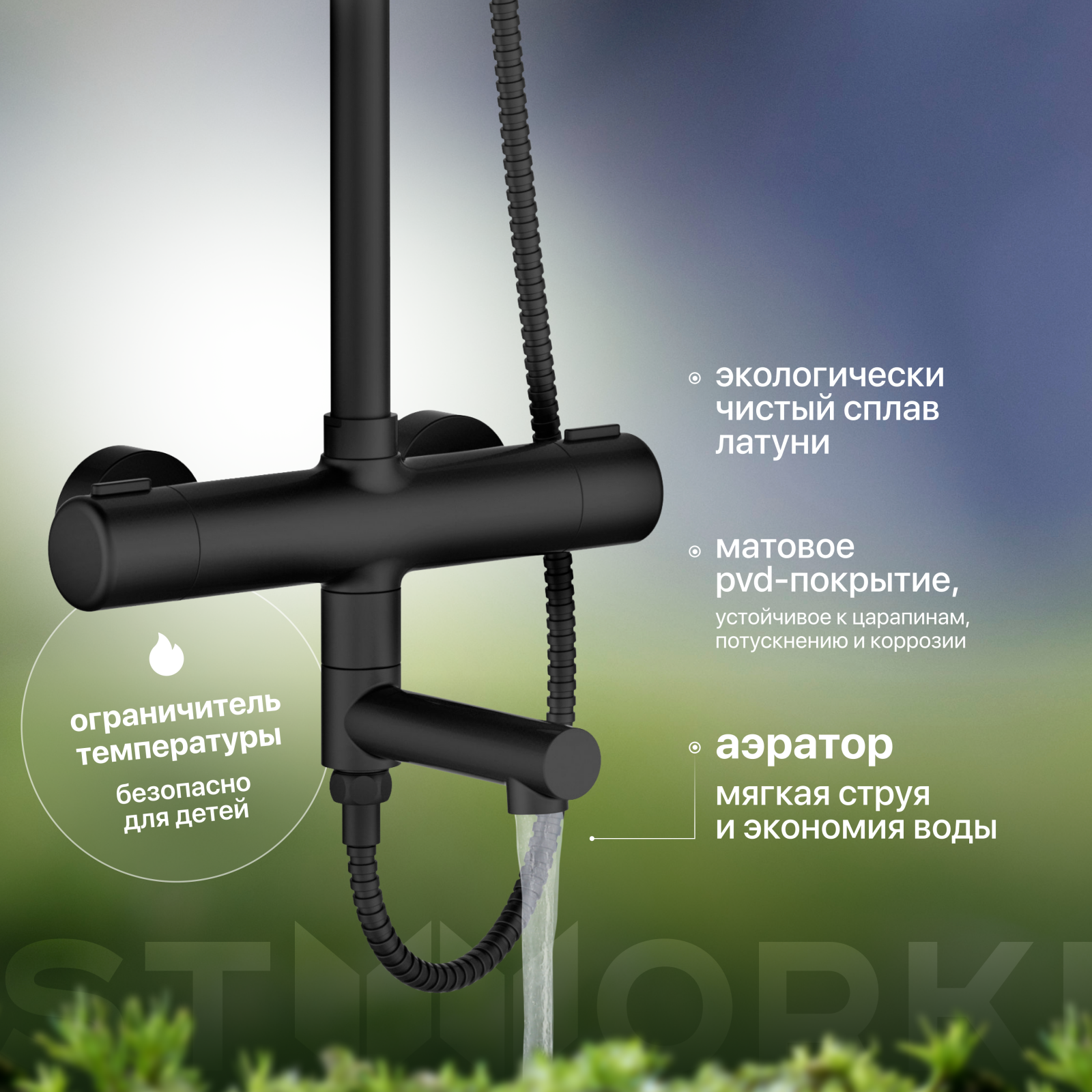 Душевая стойка с термостатом Stworki Орхус OR-03b, чёрный