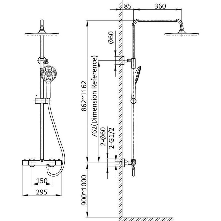 Душевая стойка с термостатом Vincea Esse VSFS-1E0TMB, черный матовый