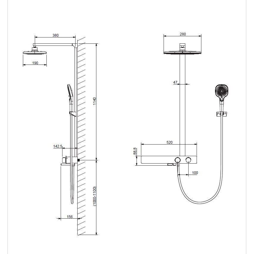 Душевая стойка с термостатом Vincea Inspire VSFS-3I13TMB, материал - латунь, цвет - черный.
