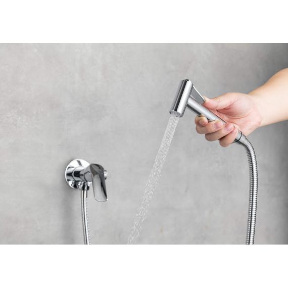 простое и практичное решение удобен для выполнения множества функций: для наполнения водой больших емкостей, для ухода за животными, для мытья грязной обуви, выполняет функцию биде, для лиц с ограниченными возможностями\nоднорычажная система регулировки силы струи и температуры воды\nцельный корпус смесителя снижает вероятность протечек\nшланг для лейки в оплетке из нержавеющей стали sus 304\nскрытый монтаж\nнеобходимые для монтажа комплектующие поставляются со смесителем