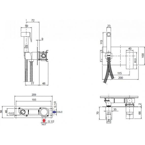 Оснащение: гигиенический душ, шланг 120 см, держатель