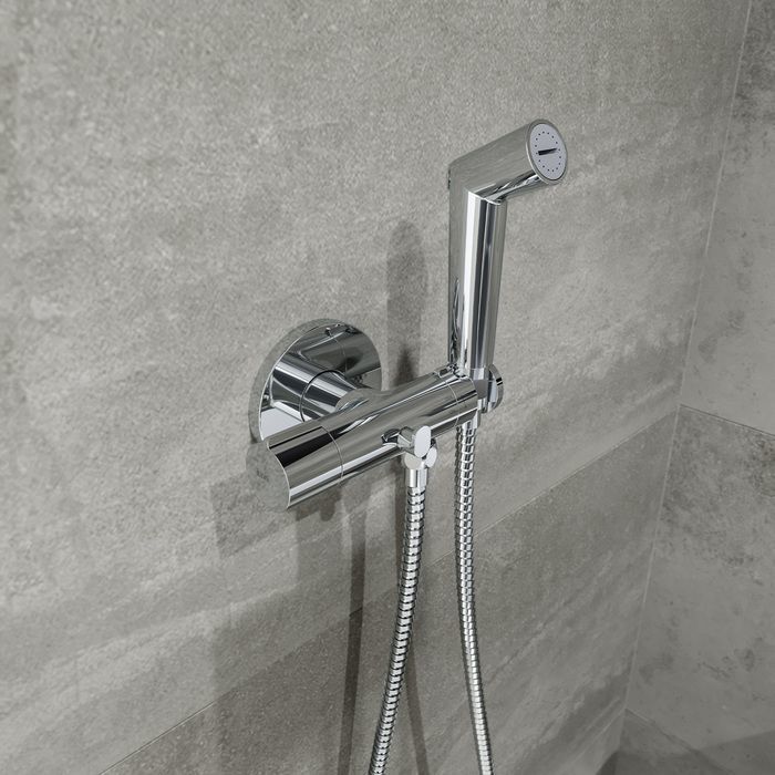 Набор для гигиенического душа Iddis Axes AXESBR0i08 со скрытой частью, душевой шланг (1,5 м) в металлической оплетке, материал - латунь, цвет - хром.