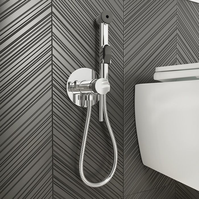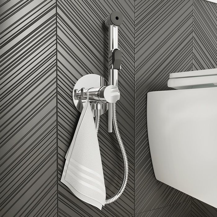встраиваемый смеситель с гигиеническим душем и крючком для полотенца, круглый