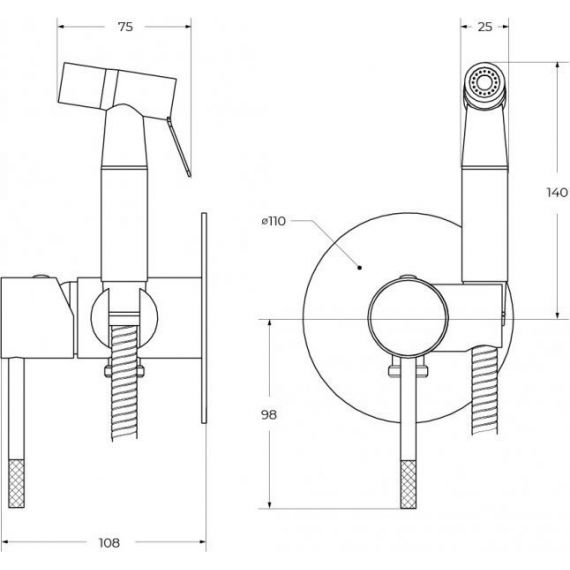 Набор для гигиенического душа Cezares RELAX-DIF-NOP (со скрытой частью), чёрный матовый