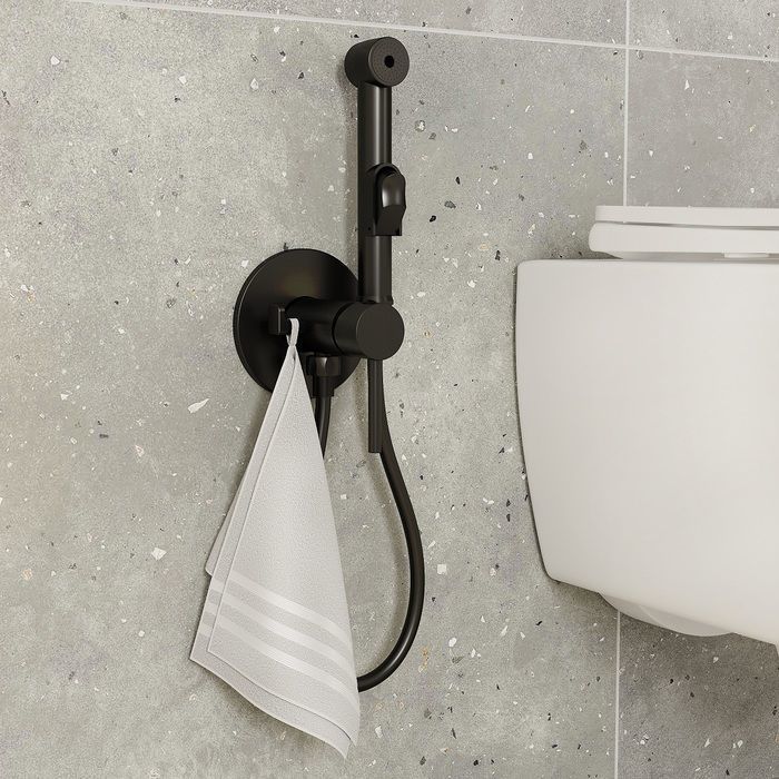 встраиваемый смеситель с гигиеническим душем и крючком для полотенца, круглый