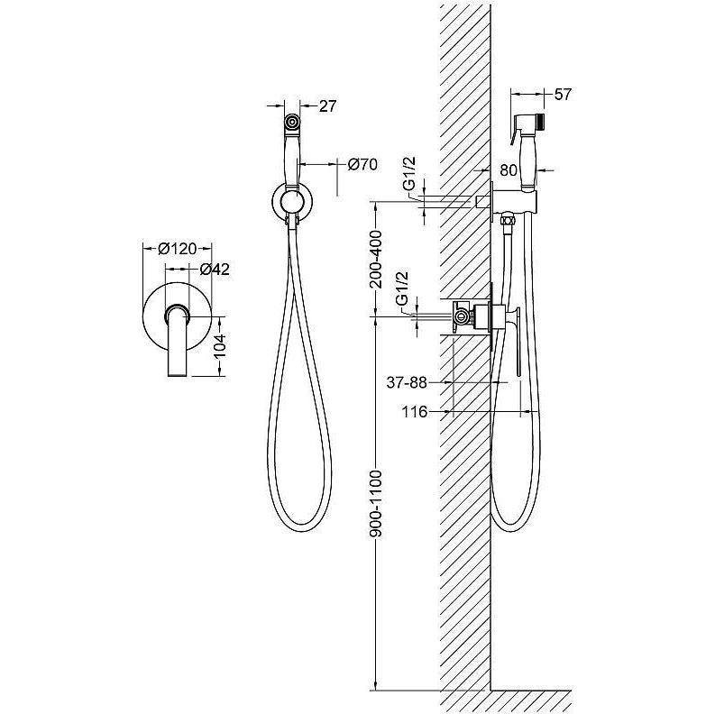 Набор для гигиенического душа Timo Anni 2789/03SM, черный матовый