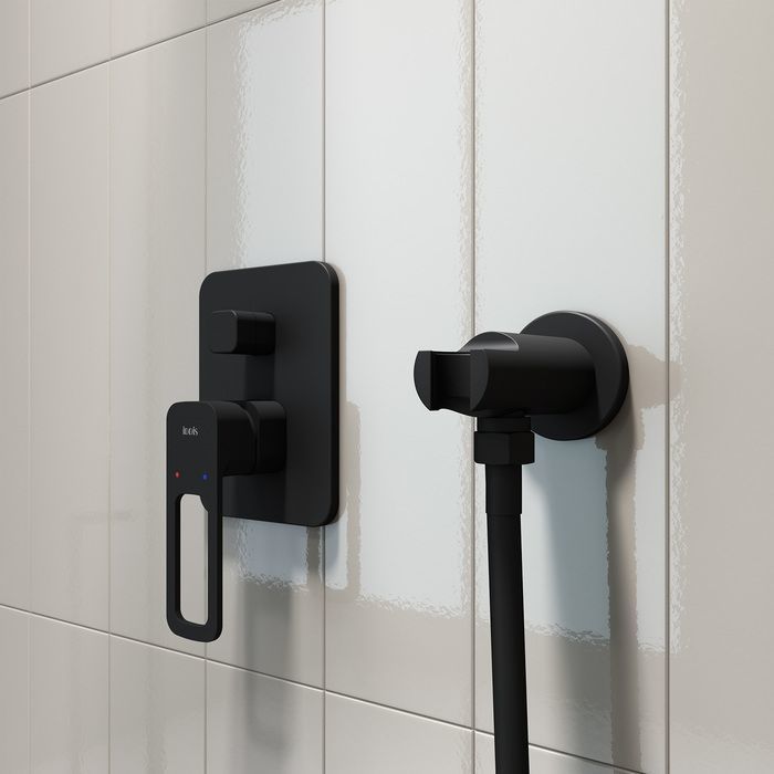Выход для шланга из коллекции Ray в трендовом черном цвете имеет универсальный дизайн и предназначен для комплектации черных встраиваемых смесителей. Аксессуар обеспечивает качественное соединение душевого шланга и трубопровода, одновременно с этим выполняя функцию удобного держателя для душевой лейки. Благодаря своему компактному размеру и актуальному дизайну выход для шланга IDDIS® будет органично смотреться в любом современном интерьере. Черное покрытие выполнено надежным методом электроплейтинга, что позволит цвету сохраниться дольше во влажном помещении ванной комнаты.