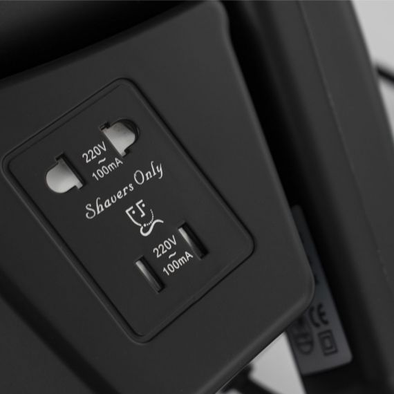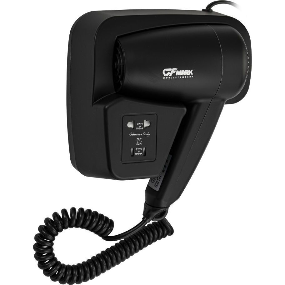 Фен для волос профессиональный, супермощный, черного цвета, в ванную комнату с боковым креплением с розеткой для бритвы, предназначен для сушки волос потоком теплого воздуха. Идеально подходит для установки в гостиницах, бассейнах, фитнес-клубах, в раздевалках складских и производственных комплексов. Так же может использоваться в личных ванных комнатах. Электрический фен позволяет комфортно и быстро высушить волосы после душа. Настенный держатель дает возможность хранить электроприбор в ванной комнате. Материал корпуса выполнен из белого высокопрочного пластика АБС, устойчивого к механическим повреждениям, перепадам температуры и коррозии. Поэтому электроприбор подходит не только для домашнего, но и для общественного использования – бассейны, сауны, душевые в спортивных залах. Благодаря небольшому весу феном удобно пользоваться. Параметры: +65°C, 1200 W, 220V/50-60Hz, скорость 18 м/с, защита - IPX4. Габаритные размеры: высота блока 165 мм, ширина блока 180 мм, глубина блока 90 мм, высота фена 210 мм, ширина фена 135 мм, диаметр фена 70 мм, длина пружинного шнура 380 - 600 мм. Вес - 0,900 кг, объем - 0,05416 м3.