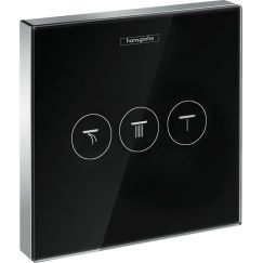 Переключатель потоков на три потребителя Hansgrohe Shower Select 15736600, материал черной накладки - стекло, материал - латунь, цвет - хром. Скрытая часть 01800180 приобретается отдельно.