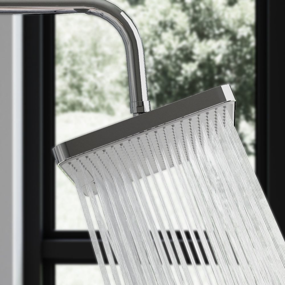 Чистые геометричные линии, которые идеально впишутся в интерьер современной ванной комнаты в скандинавском стиле.\nНастоящее SPA прямо у вас дома: увеличенный размер тропической лейки с регулируемым углом наклона (220 мм) сделает ваши ежедневные ритуалы незабываемыми. Наши инженеры рассчитали оптимальное расстояние между форсунками для распределения воды равномерно по всей лейке.\nПоддерживать чистоту стало еще проще благодаря функции очистки резиновых форсунок Rub&Clean.\nИнновационное покрытие High Gloss надежно защищает хромовую поверхность от мелких повреждений и сохраняет ювелирный блеск на долгие годы.