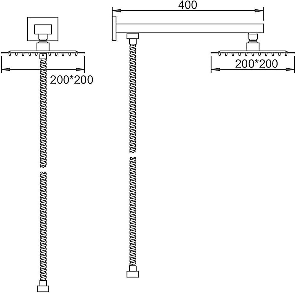 Верхний душ Ledeme L2417 200x200 мм с кронштейном и шлангом, материал - латунь, цвет - хром.
