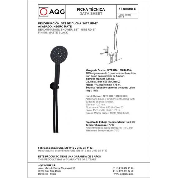 Душевая система для душа AQG Beta ER217 19BETER21705, черный матовый