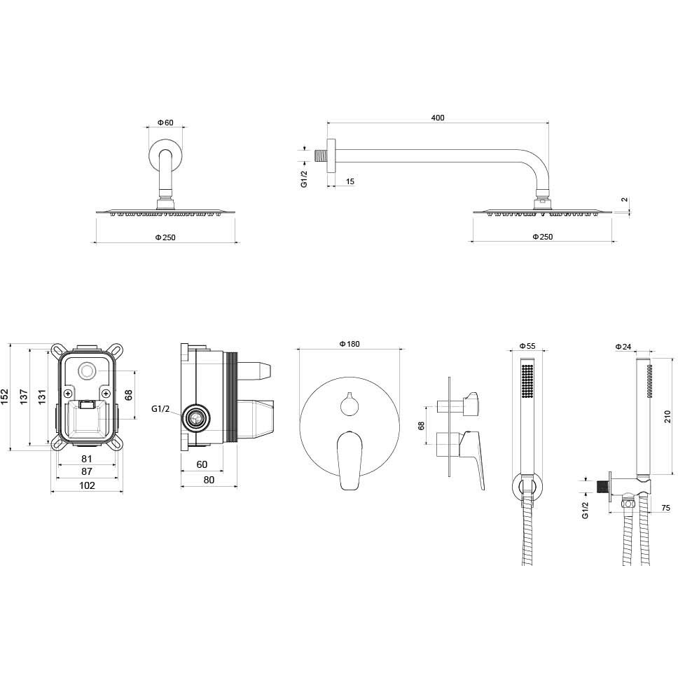 Душевая система для душа Aquatek Бетта AQ1172BGM со скрытой частью, материал латунь, цвет чёрный хром шлифованный.