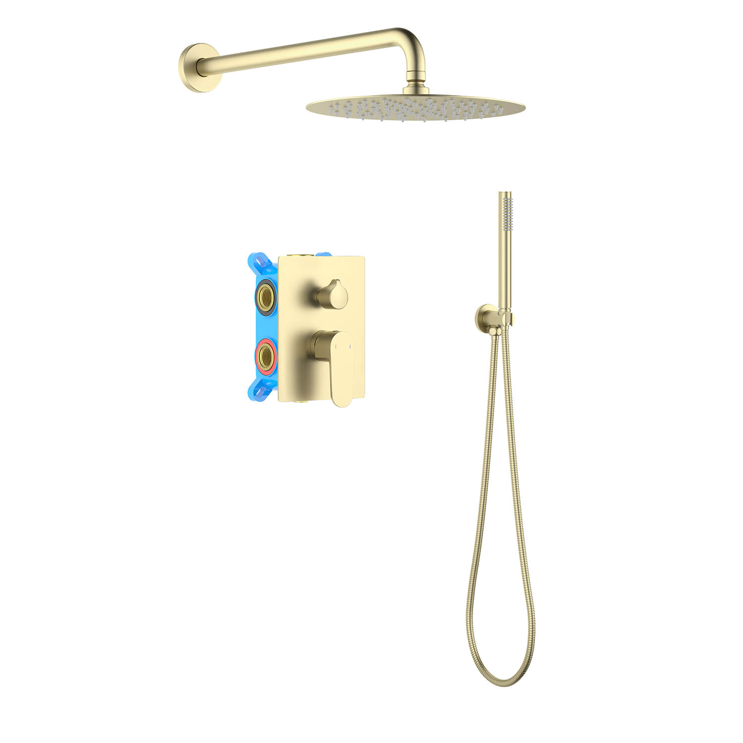 Душевая система для душа Aquatek Оберон AQ1272BG со скрытой частью, материал латунь, цвет золото шлифованное.