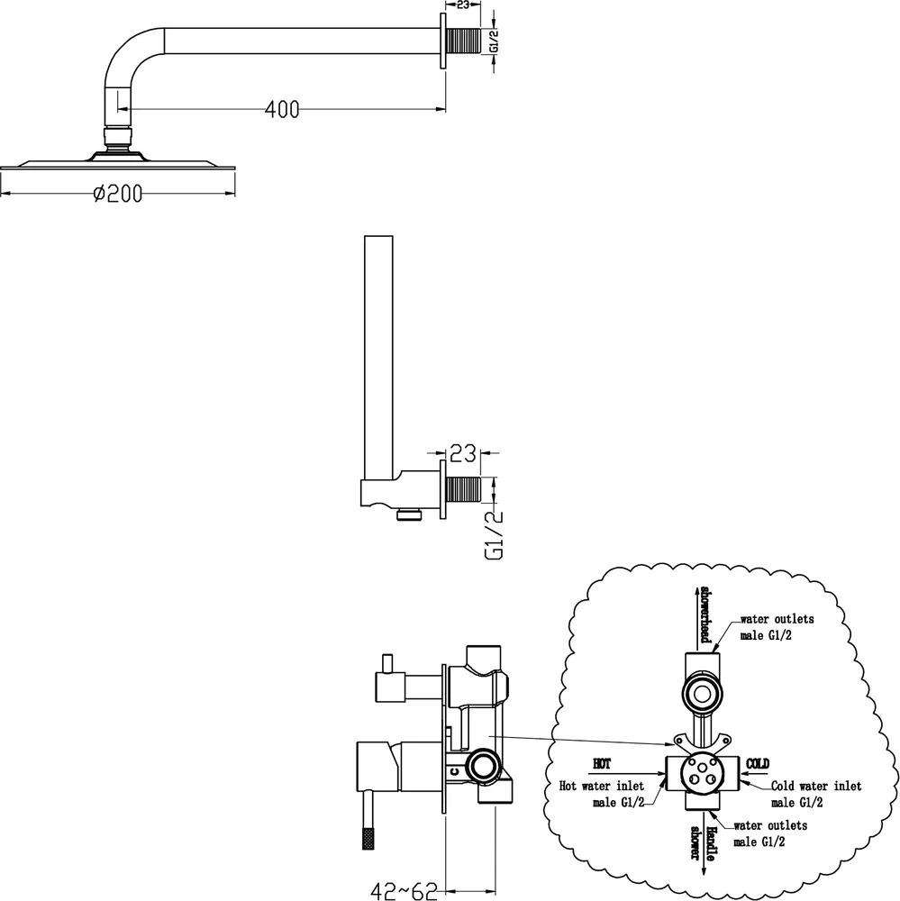 Душевая система для душа Boheme Uno 464-B со скрытой частью, материал - латунь, цвет чёрный матовый