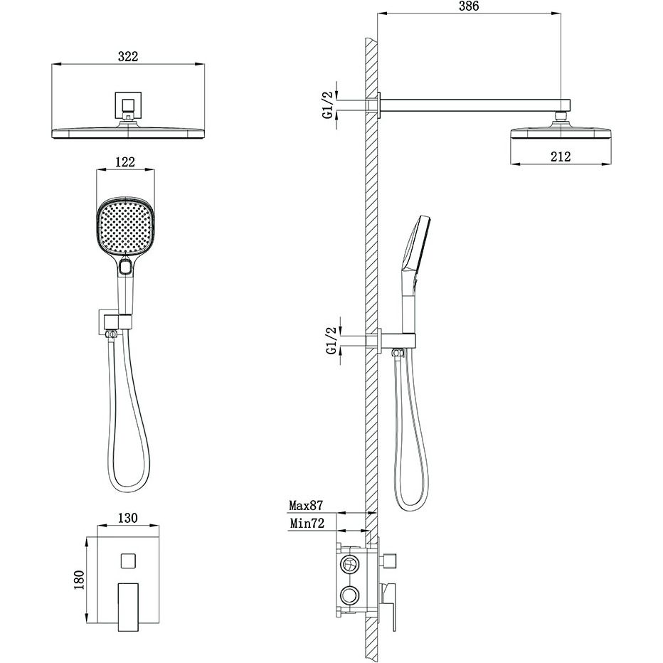 Душевая система для душа Veconi AV-410-B-C4, чёрный матовый