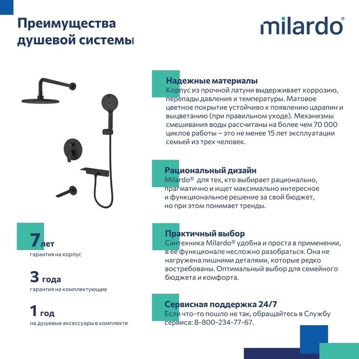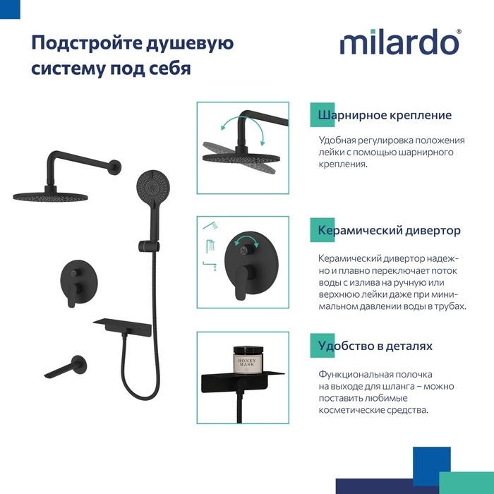 Душевая система для ванны Milardo Rora RORBL03M68, чёрный матовый