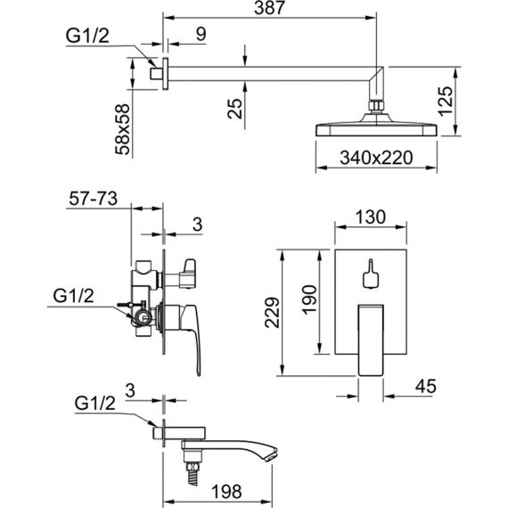 Душевая система встраиваемая Raglo R01.27.03 (со скрытой частью) сатин золотой