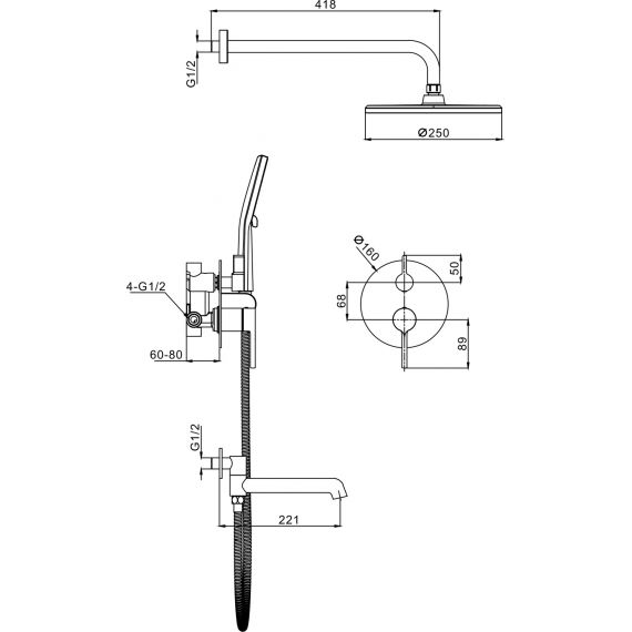 Душевая система встраиваемая Raglo R20.27.06 (со скрытой частью) чёрный
