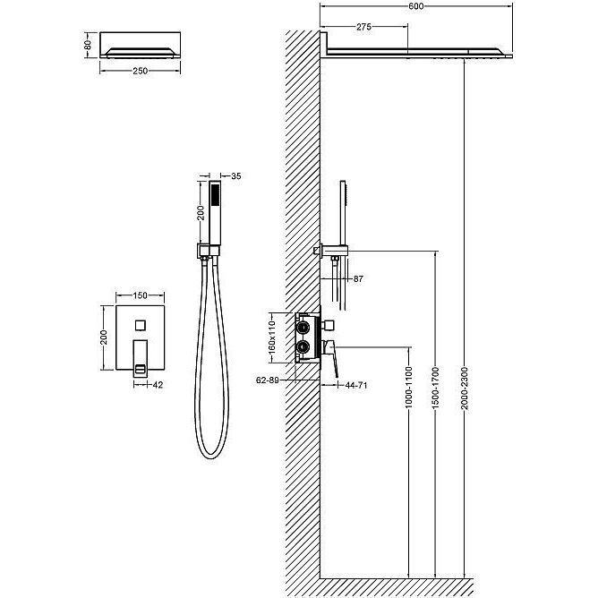 Размер верхнего душа: 502 x 230 мм