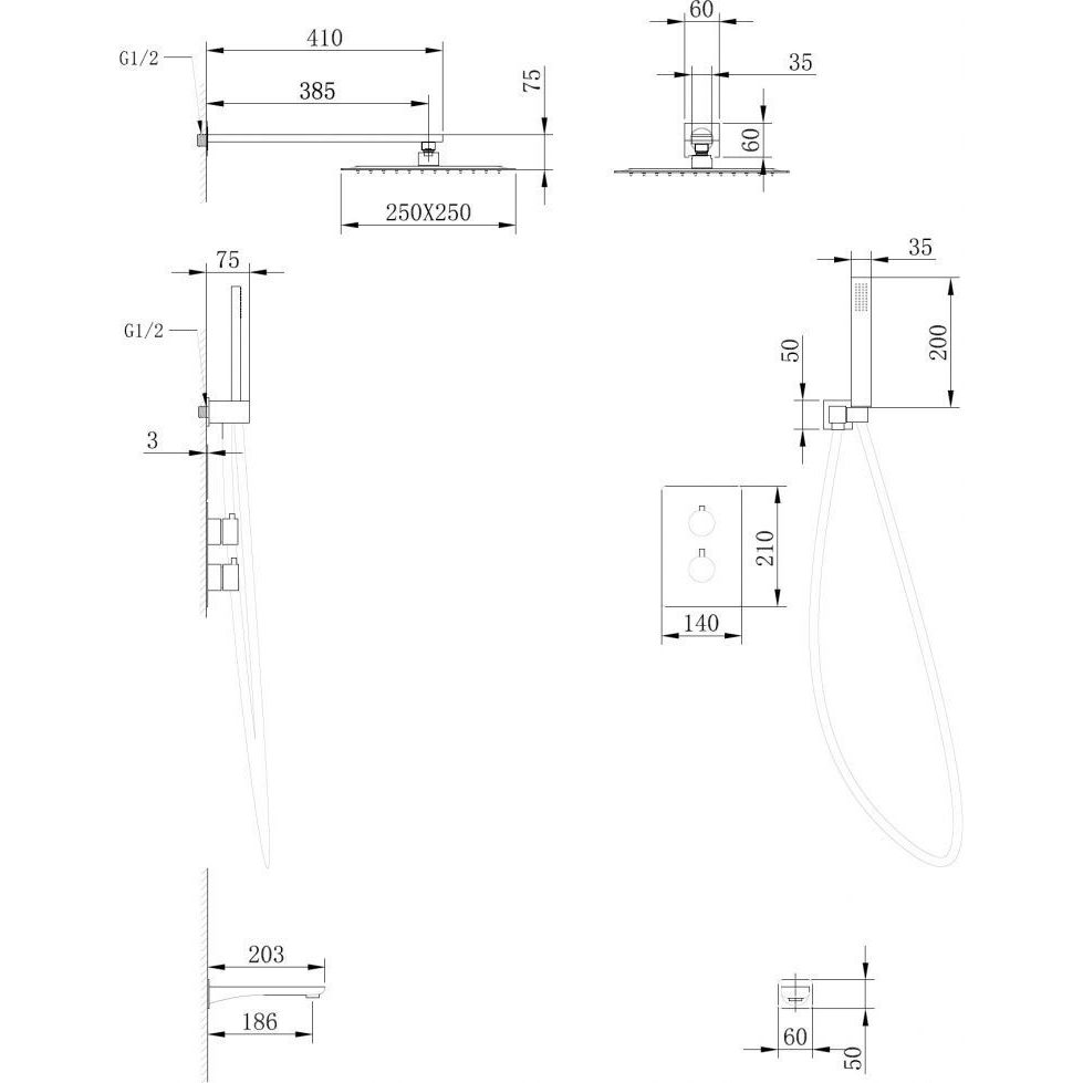 Душевая система для ванны с термостатом Abber Weiss Insel AF8050