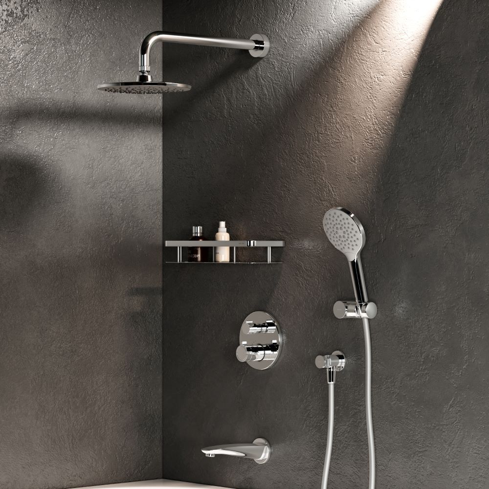 Коллекция X-Joy включает в себя по-настоящему дизайнерские продукты в своем ценовом сегменте. Разработанные дизайн-агентством GP designpartners из Австрии, они завоевали любовь многих покупателей.\nНабор встроенного оборудования X-Joy - идеальное решение для вашей ванной комнаты. Встроенный механизм освобождает ванную комнату от лишних деталей, превращая пространство в идеальное место для себя. Набор включает в себя: верхний тропический душ 22 см, ручной душ, держатель ручного душа и смеситель.\nВысокопроизводительный Коаксиальный картридж с термостатом, включающий высокочувствительный термоэлемент, обладает быстрой реакцией на изменения температуры или давления в водопроводной сети, защищает от ожога даже при внезапном отключении холодной воды.\nУдобные ручки управления потоком и температурой воды расположены на одном уровне, что позволяет менять режимы легко и просто. Смеситель имеет удобный переключатель сразу на 3 выхода, что является эффективным инженерным решением в сантехнической отрасли.\nПокрытие Everlast – вдвое превышает отраслевые стандарты по прочности и износостойкости. Ювелирный блеск и прочность покрытия достигаются по стандарту Chrome plating standard NSS 80H. Отдельная гарантия на корпус и покрытие – 10 лет, в два раза больше чем принято по европейским стандартам.