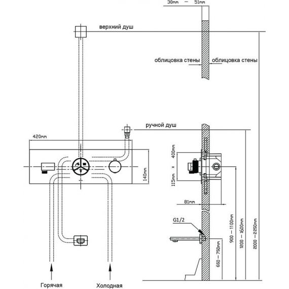Душевая система для ванны Vincea VSFW-432TI3CH, материал - латунь, цвет - хром.
