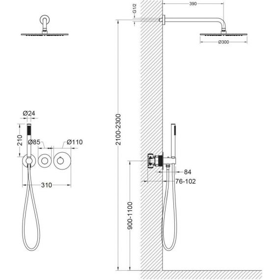 Душевая система для душа с термостатом Timo Saona SX-2359/17SM, золото матовое