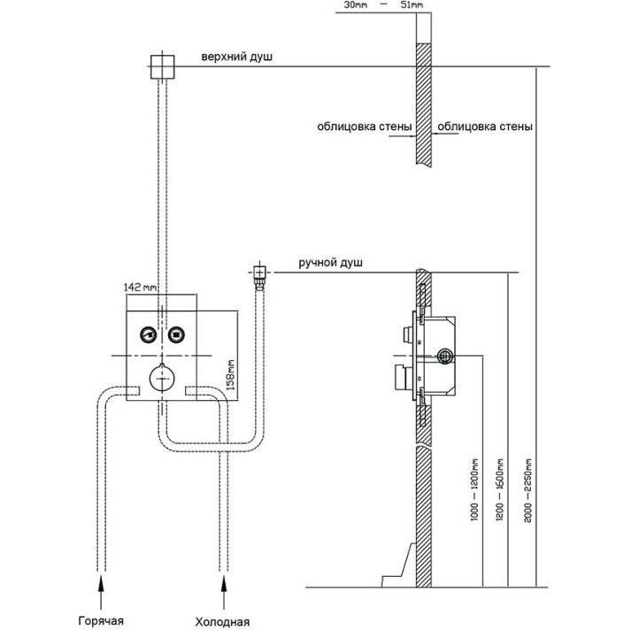 Душевая система для душа с термостатом Vincea Inspire VSFW-3I21T2GM, вороненая сталь