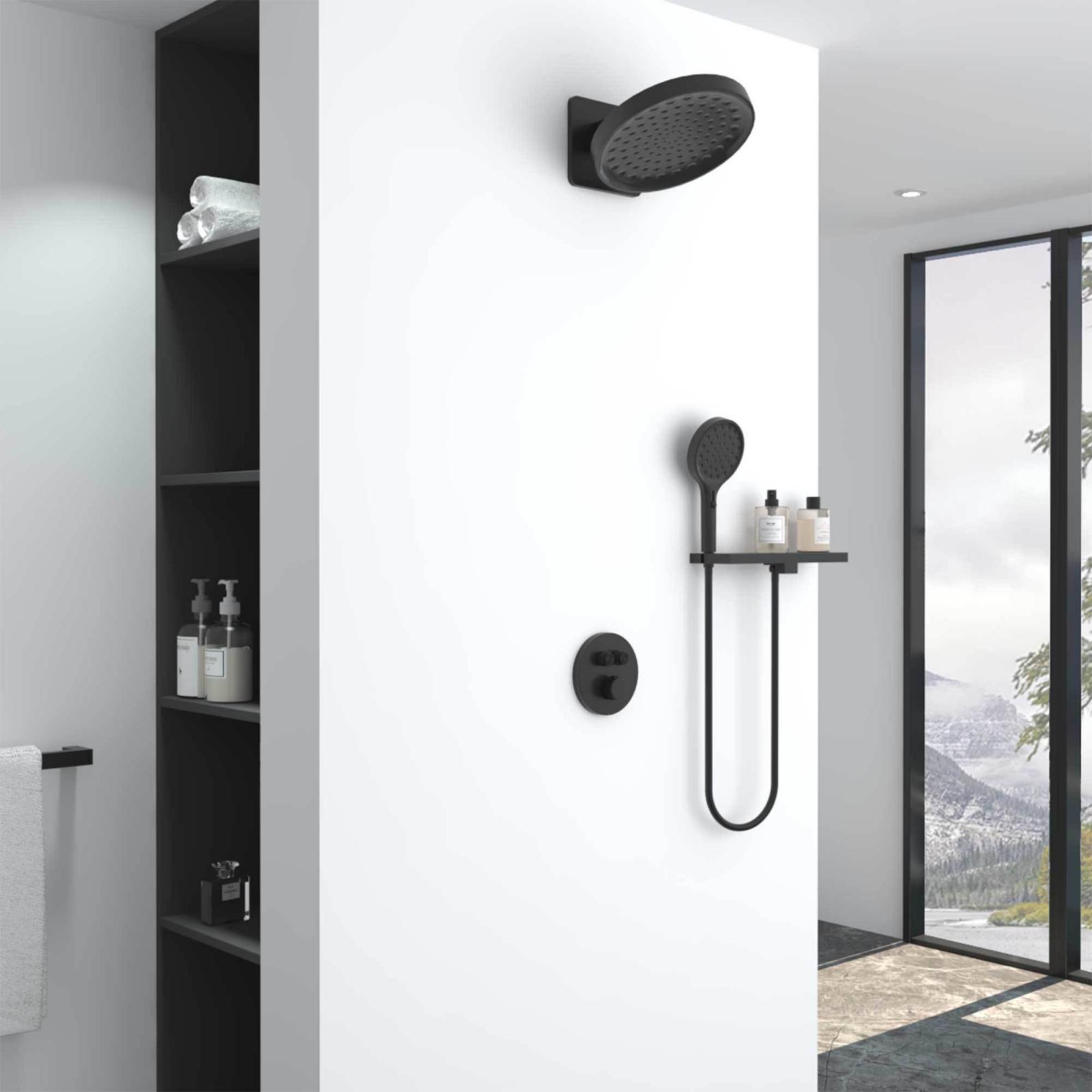 Душевая система для душа с термостатом Vincea Inspire VSFW-3I22MT3RMB, материал латунь, цвет чёрный матовый.