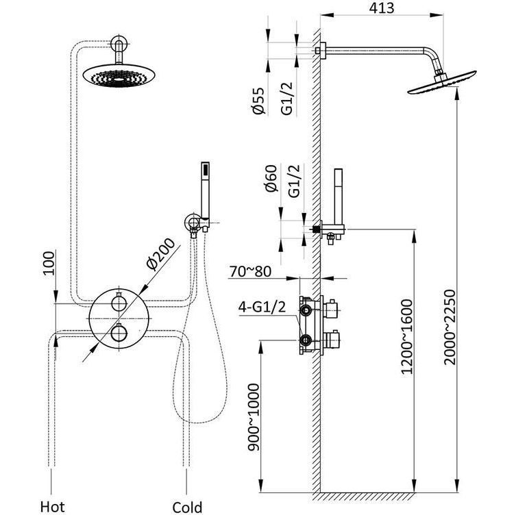 Душевая система для душа с термостатом Vincea VSFW-101TMB, черный матовый